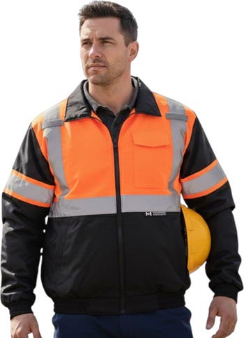 The Canada Weather Gear Men’s Hi-Visibility Work Jacket delivers reliable protection and standout visibility on the job. Designed for professionals who demand comfort and durability, this reflective safety bomber jacket combines a water-resistant exterior, 2-inch reflective tape, and bright neon-yellow color blocking to ensure you remain visible in all conditions. Featuring a full-zip closure, functional utility pocket, and reinforced stitching, this jacket is perfect for worksites, road crews, and outdoor tasks where safety comes first. Whether you’re tackling a shift at dawn or working late, you’ll stay warm, dry, and visible — the Canada Weather Gear way.