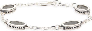 Add signature style to your look with this silver-plated bracelet showcasing four stations of engraved open links that offer a vintage feel with a blackened finish.