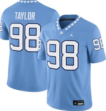 Celebrate one of the greatest defensive players in football history with this Jordan Brand Lawrence Taylor North Carolina Tar Heels Home Game Jersey. This features screen-printed details highlighting Lawrence s name and iconic #98, allowing you to rep the legend with every wear. Its loose fit and breathable mesh side panels ensure comfort while you cheer on the Tar Heels. With its stitched team logo and satin woven jock tag, this jersey is a must-have for any dedicated North Carolina Tar Heels fan.