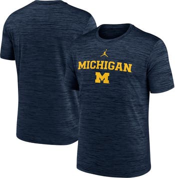 Wear the same gear as the Michigan Wolverines with this 2025 Sideline Velocity Performance T-Shirt by Jordan Brand. It features sweat-wicking Dri-FIT technology to keep you dry and cool, whether you re at the game or playing yourself. The cross-dyed pattern adds visual interest to this lightweight Michigan Wolverines tee.