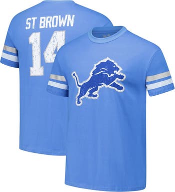 Men s Majestic Threads Amon-Ra St. Brown Blue Detroit Lions Oversized Player Name Number T-Shirt
