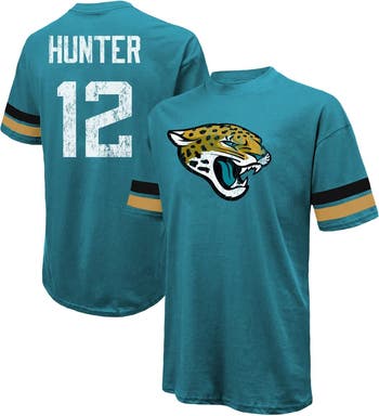 Men s Majestic Threads Travis Hunter Teal Jacksonville Jaguars 2025 NFL Draft First Round Pick Oversized T-Shirt