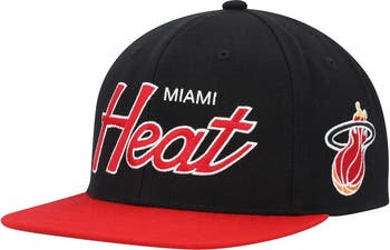 Leave no doubt that you are the number one Miami Heat supporter by picking up this MVP Team Script 2.0 snapback hat from Mitchell Ness. This eye-catching cap features embroidered retro team graphics across the front and on the side, as well as a contrast-color undervisor. The structured fit is sure to provide a comfortable feel that you ll desire for cheering the Miami Heat on to victory.