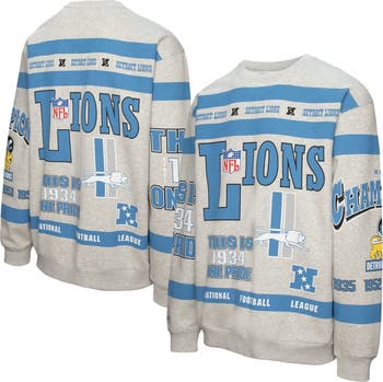Men s Mitchell Ness Heather Gray Detroit Lions All Over Print Vintage Fleece Crewneck Sweatshirt