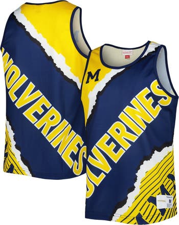 Men s Mitchell Ness Navy/Maize Michigan Wolverines Jumbotron 2.0 Sublimated Tank Top