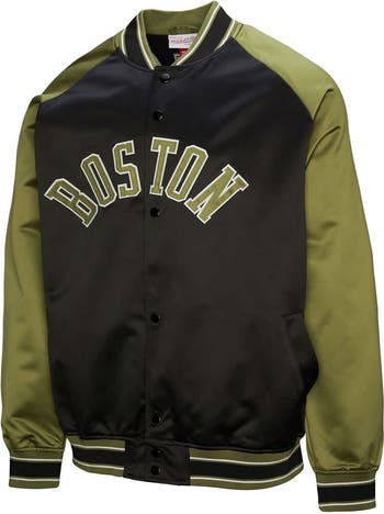 Men s Mitchell Ness Olive/Black Boston Celtics Clutch Satin Raglan Full-Snap Jacket