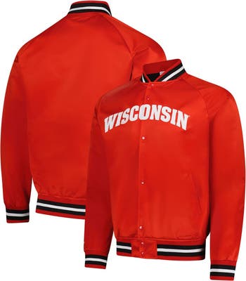 Men s Mitchell Ness Red Wisconsin Badgers Lightweight Satin Raglan Full-Snap Jacket