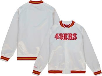 Men s Mitchell Ness White San Francisco 49ers Vintage Logo Satin Full-Snap Jacket