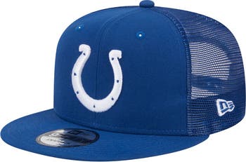 Cheer on your Indianapolis Colts with this Main Trucker 9FIFTY Snapback Hat from New Era. This hat features a classic snapback design with a high crown and flat bill for a timeless and comfortable fit. The embroidered graphics with raised details add a touch of dimension and texture, showcasing your Indianapolis Colts pride with style.