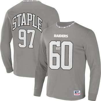 The Men s NFL x Staple Gray Las Vegas Raiders Core Team Long Sleeve T-Shirt is a must-have for any devoted Las Vegas Raiders fan. With its screen printed graphics, this shirt proudly displays your allegiance to the Las Vegas Raiders and the NFL. Whether you re cheering from the stands or simply showing your support, this long sleeve t-shirt is the perfect way to represent your favorite team.