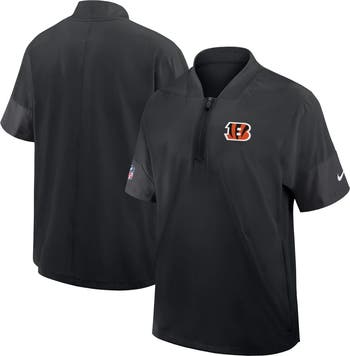 Look like one of the Cincinnati Bengals coaching staff in this Sideline Short Sleeve Quarter-Zip Coach Jacket by Nike. Crafted with water-repellent taffeta fabric, it offers lightweight, breathable coverage from the elements. Zippered side seams allow for easy use, making this Cincinnati Bengals jacket perfect for layering in changing weather conditions.