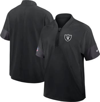 Look like one of the Las Vegas Raiders coaching staff members in this Sideline Short Sleeve Quarter-Zip Coach Jacket by Nike. Crafted with water-repellent taffeta fabric, it offers lightweight, breathable coverage from the elements. Zippered side seams allow for easy use, making this Las Vegas Raiders jacket perfect for layering in changing weather conditions.