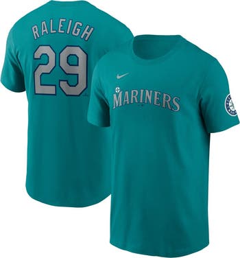 Root for your top Seattle Mariners player in this Cal Raleigh Fuse Name Number Inline T-Shirt by Nike. The printed team wordmark and jersey-like design make it clear you re a dedicated Seattle Mariners fan. Made from breathable cotton fabric, this Cal Raleigh tee keeps you cool and comfortable at the ballpark or while watching at home.