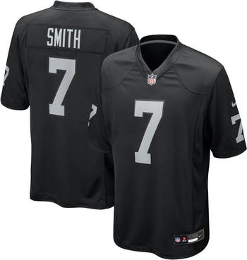 Elevate your Las Vegas Raiders game day look with this Geno Smith Game Player Jersey from Nike. This jersey is designed for movement, featuring mesh side panels for added breathability and side splits at the hem for a full range of motion. The heat-sealed name, numbers and team details showcase your Las Vegas Raiders pride with a sleek, modern aesthetic.
