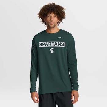 Combine modern performance and Michigan State Spartans fandom with this Primetime Campus 2-Hit Legend Dri-FIT Long Sleeve T-Shirt from Nike. It features sweat-wicking technology to keep you cool and dry, whether you re at the game or out and about. Lightweight jersey fabric gives this Michigan State Spartans tee a comfortable feel all day.