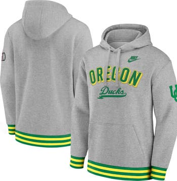 Stay warm in throwback style with this Oregon Ducks Legacy Retro Pullover Hoodie by Nike. Embroidered appliques and rib-knit trim add vintage touches to the modern design. Dropped shoulders provide plenty of room for comfortable movement, while cozy fleece fabric keeps you comfy in this classic Oregon Ducks hoodie.