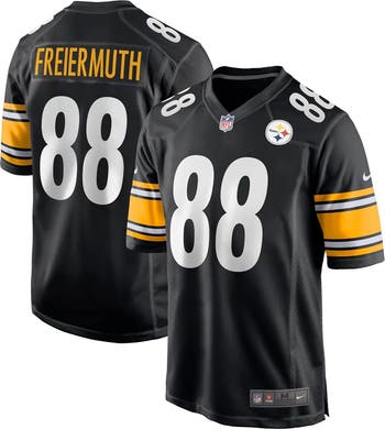 Rep the on-field look of your favorite Pittsburgh Steelers player with this Pat Freiermuth Game jersey from Nike. Its screen print name, numbers and team details provide a kickoff-ready aesthetic while also offering a comfortable, lightweight feel. Designed for everyday movement, this jersey has a versatile tailored fit and features mesh side panels for added ventilation as you celebrate every big play by the Pittsburgh Steelers this season.