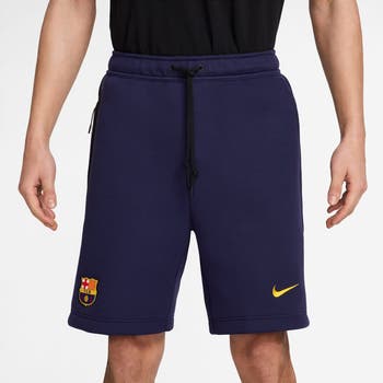 Show off your passion for your favorite club with these Barcelona Tech Fleece Shorts from Nike. The Tech Fleece material offers lightweight warmth and a sleek feel, making these shorts perfect for both lounging and active pursuits. Designed with multiple pockets, including a taped side pocket with an interior organizer, these shorts provide ample storage for your essentials.