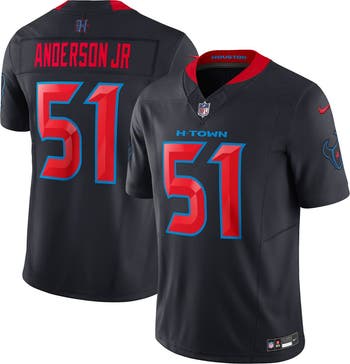 Walking into the stadium, you feel a rush of energy pass over you. You adjust your Houston Texans Nike Limited jersey and know you re ready to get swept up in the electricity of the game. Made for authenticity-seeking fans, this state-of-the-art Vapor F.U.S.E. jersey draws inspiration from your team s on-field look with reimagined seamlines and a chainmaille mesh grill at the front neck. Its updated embellishments include sublimated twill name and numbers, which are heat-transferred onto the front and back panels to show support for your favorite player. Lightweight, breathable fabric with built-in Dri-FIT technology keeps you cool and comfortable as you celebrate every big play by Will Anderson Jr. this season.
