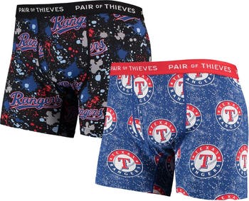 Rep the Texas Rangers in every part of your outfit with this Super Fit two-pack boxer briefs set from Pair of Thieves. Lightweight mesh fabric and a no-roll elastic waistband offer the most comfortable experience you can have while supporting your favorite team. Texas Rangers graphics sitting on top of the eye-catching pattern serve as a great base to layer on more game day gear.