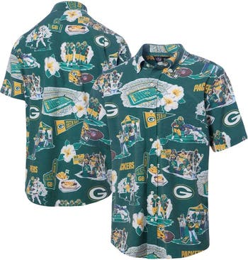 The Green Bay Packers Scenic Button-Down Shirt from Reyn Spooner is a stylish way to show your support for your favorites. Made from soft cotton, this shirt features sublimated graphics of the Green Bay Packers logo and classic city iconography. The chest pocket and side splits at the waist hem add a touch of sophistication, while the button-down closure ensures a secure fit. Whether you re cheering on the Green Bay Packers at the game or just showing your pride around town, this shirt is sure to turn heads.