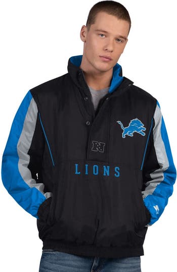 Showcase your Detroit Lions pride with this Men s from Starter. The quilted lining provides warmth and comfort, while the front zipper with four-snap overlay helps to provide protection from the elements. The fabric applique team logo with embroidered detail on the front and back proudly showcases your Detroit Lions pride, while the sleeve stripes and contrast-color piping add a touch of athletic flair.
