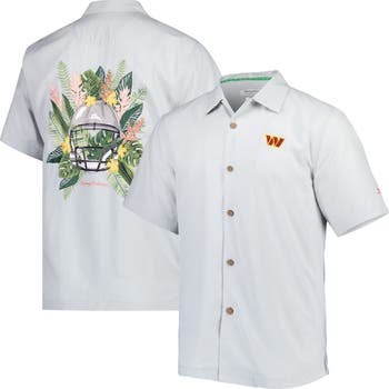 Men s Tommy Bahama Gray Washington Commanders Coconut Point Frondly Fan Camp IslandZone Button-Up Shirt