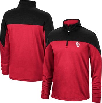 Men s Top of the World Crimson/Heathered Black Oklahoma Sooners Textured Color Block Quarter-Zip Top