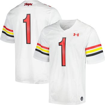 Men s Under Armour #1 White Maryland Terrapins Replica Football Jersey
