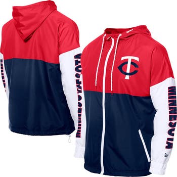 Gear up for your next trip with this Minnesota Twins Color Block Full-Zip Hoodie Windbreaker from New Era. This stylish windbreaker features a bold color block design in team colors complete with screen-printed graphics. With dropped shoulders for a relaxed fit, an adjustable drawstring hood and a drawcord hem, this Minnesota Twins windbreaker offers both comfort and customizable style.