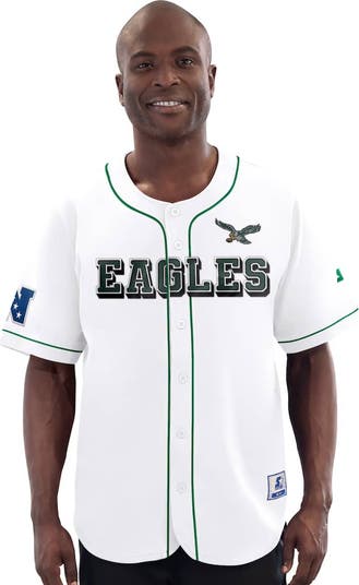 Channel classic baseball style while repping the Philadelphia Eagles with this Starter Relay Vintage Full-Button Baseball Jersey. Made from breathable 100% cotton, this fashion jersey provides a comfortable and classic fit for everyday wear. The embroidered fabric applique graphics add a touch of texture and dimension, showcasing your Philadelphia Eagles pride with a vintage aesthetic.
