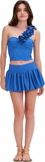 - This skirt features our Merian Knit material with a mid waist rise thick waist band into a mini pleated bubble skirt. Made in Brazil. 96% Polyamide 4% Elastane. SAC31827