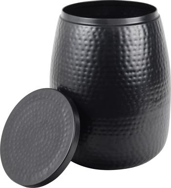 Merida Modern Rustic Hammered Metal Drum Storage Side Table with Lid
