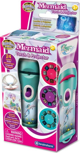 TORCH PROJECTOR: MERMAID - This fantastic projector torch projects beautiful images of mermaids around your room. View the images on your walls and ceilings including illustrative images of mermaids, dolphins and underwater scenes –a great bedtime companion to make going to sleep more fun. 3 DISCS WITH 24 IMAGES: The torch comes with three slide discs with 24 color fascinating mermaid images. Swap and change the slides easily by inserting the chosen disc then rotate the disc round to view the fantastic color images which project up to one meter wide. Images are easily focused by turning the lens head. It can also be used as a normal torch without the slides in place and is great for keeping on bedside tables to give comfort to children during the night. PERFECT SIZE: The torch measures 4.5" (12 cm) long and 1.5" (4 cm) in diameter. A perfect, fun yet educational, gift for boys and girls who are interested in the magic of mermaids. Now that kids grow out of toys earlier and earlier, torches will appeal to kids into their tween and teen years. Ideal for pajama parties and sleepovers.