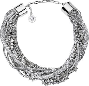 Area fuses grunge and glamour to fabulous effect in this hardware-heavy choker, where tangled chains and crystal tendrils collide in a ‘happy accident’ of elaborately knotted brilliance.
