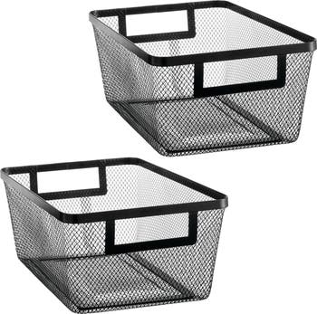 Enjoy quick access to your preferred ingredients with the Metal Mesh Pantry Basket, turning recipe card favorites into culinary delights. Sleek and highly versatile, this solution corrals small seasoning jars, snacks, or boxed foods so you never lose anything to the back of the pantry again. The metal mesh design and open-top concept allow for proper air circulation when storing fruits and vegetables and easy visibility to quickly inventory items inside without rummaging. Crafted from durable metal with built-in handles, these baskets transport easily and make a darling display when moved from the pantry to the countertop or kitchen table.