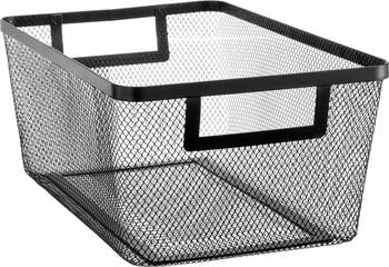 Enjoy quick access to your preferred ingredients with the Metal Mesh Pantry Basket, turning recipe card favorites into culinary delights. Sleek and highly versatile, this solution corrals small seasoning jars, snacks, or boxed foods so you never lose anything to the back of the pantry again. The metal mesh design and open-top concept allow for proper air circulation when storing fruits and vegetables and easy visibility to quickly inventory items inside without rummaging. Crafted from durable metal with built-in handles, these baskets transport easily and make a darling display when moved from the pantry to the countertop or kitchen table.
