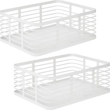 - SLEEK DESIGN - This basket features a flat, open wire style for easy visibility while a reinforced mesh base prevents smaller items from falling through; Integrated handles facilitate easy transport