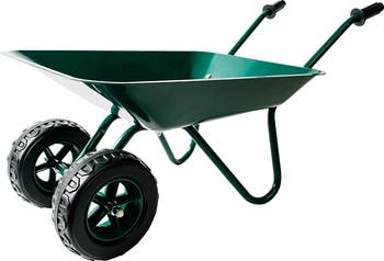 TRIMATE WHEELBARROW: HUNTER GREEN - The Trimate Kids Metal Wheelbarrow in Hunter Green is the perfect companion for springtime gardening and imaginative role play. Built with a sturdy, heavy-duty steel frame, it’s designed for easy use by little hands, making it simple for kids to haul toys, dirt, or leaves. The soft grip handles provide comfort during playtime, reducing strain as children enjoy hours of outdoor fun. With its seamless, no-scratch steel tray and durable molded wheel, this wheelbarrow offers smooth, stable handling for safe adventures. Whether they re helping with yard chores or transporting their favorite treasures, the durable construction ensures long-lasting use. The Trimate Wheelbarrow is not just functional—it encourages kids to develop coordination, responsibility, and a love for the outdoors. Perfect for year-round play, from springtime gardening to autumn leaf hauling, this wheelbarrow is an essential tool for young gardeners and budding builders alike. Let their imagination take the lead with this reliable, kid-friendly wheelbarrow! STELL FRAMEWORK! features a stell bucket and undercarriage.
