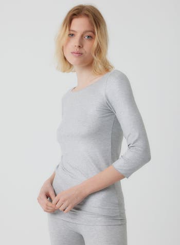 Metallic 3/4 Sleeve Boatneck Top with Merrow Edge