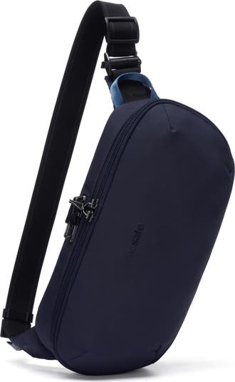 Hands down, the best sling pack ever. Packed with iconic Pacsafe anti-theft features such as a cut-resistant eXomesh lining, lockable zippers, an RFID-blocking pocket, and a cut-resistant shoulder strap, you know your bag, valuables, and identity are safe. The wide opening allows for easy organization of your gear, with compartments and pockets to accommodate all your necessities. The design offers the flexibility to carry the sling on your back, chest, or either shoulder because we understand the importance of versatility. This product is made with post-consumer recycled polyester (rPET), equivalent to 8 recycled plastic bottles, and is treated with 100% PFC-free water repellency.