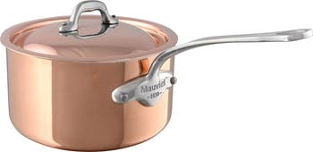 The Mauviel M’Heritage M’150s 1.9 Qt. Saucepan is handcrafted in France from 1.5 mm thick copper with a durable stainless steel interior for lasting performance and control. Featuring a cast stainless handle and tight-fitting lid, it provides exceptional heat conductivity and precision for sauces and reductions. Compatible with all cooktops except induction.