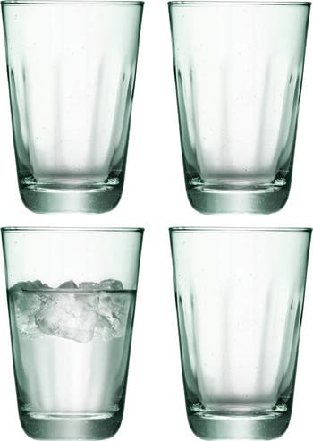 Light fluting subtly textures this set of stackable glasses that are mouth-blown from recycled glass with a sweet, throwback style.