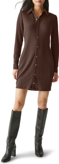 This ribbed minidress features buttons down the front for easy conversion to a lightweight cardigan.