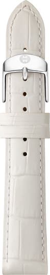 Croc embossing textures a modern, interchangeable leather strap with a logo buckle to pair with your favorite MICHELE watch case.