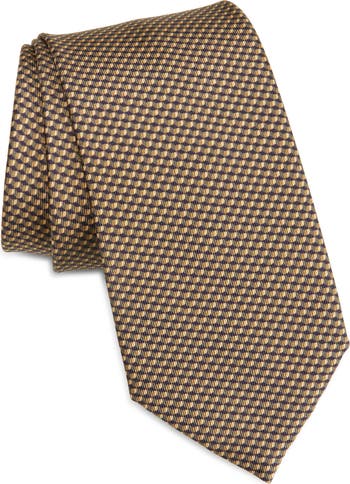 A small, neat pattern brings understated distinction to this lustrous Italian-silk jacquard tie that complements formal and semiformal attire.