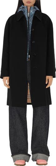 The streamlined Camden car coat is distinguished by its pared-back silhouette and concealed button closure. Predating the trench, Burberry has been crafting car coats since the 1880s, and the heritage-inspired Camden is made in England from shower-resistant cotton gabardine, woven at the Burberry Mill. Tailored to a regular fit with rounded shoulders, the minimalist style balances understated sophistication with everyday versatility. Wear it open over layers to reveal a subtle hint of Burberry Check lining.||Single-breasted button closure|Side button welt pockets|Button-tab cuffs|Back button vent|Burberry Check lining and undercollar|Comes with a garment bag