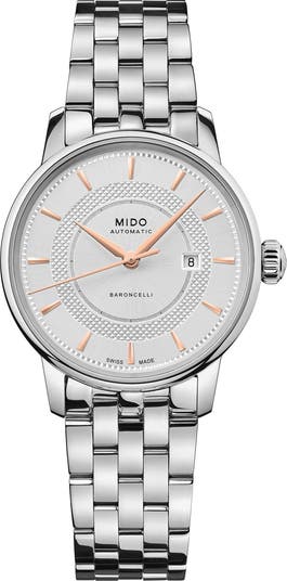 Precision reigns supreme on this Swiss-made automatic bracelet watch with a skeleton caseback that allows you to observe its intricate inner workings. A MIDO-exclusive Nivachron™ balance-spring limits the effect of magnetic fields and helps endure shocks and natural tests of time.