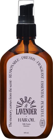 - Lightweight hair oil with calming verbena and lavender aroma.