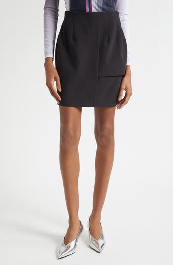 Asymmetric lines create texture and dimension on this stretch-kissed skirt cut in a leggy length.